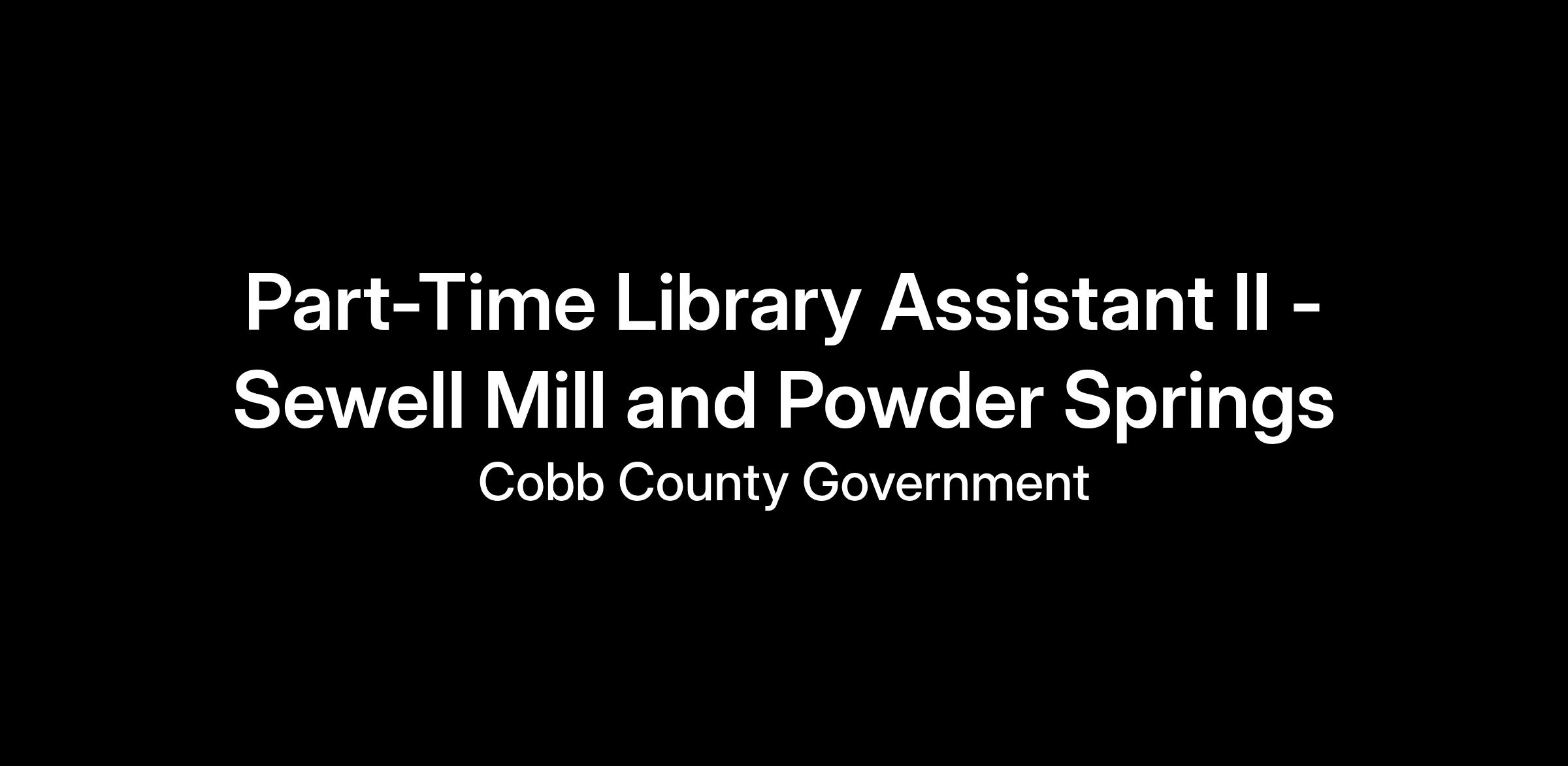 This part-time Library Assistant II position is located at Sewell Mill and Powder Springs Library. The position at Powder Springs will work at the circulation and reference desks, and assist the Youth Services Librarian with programs and outreach.