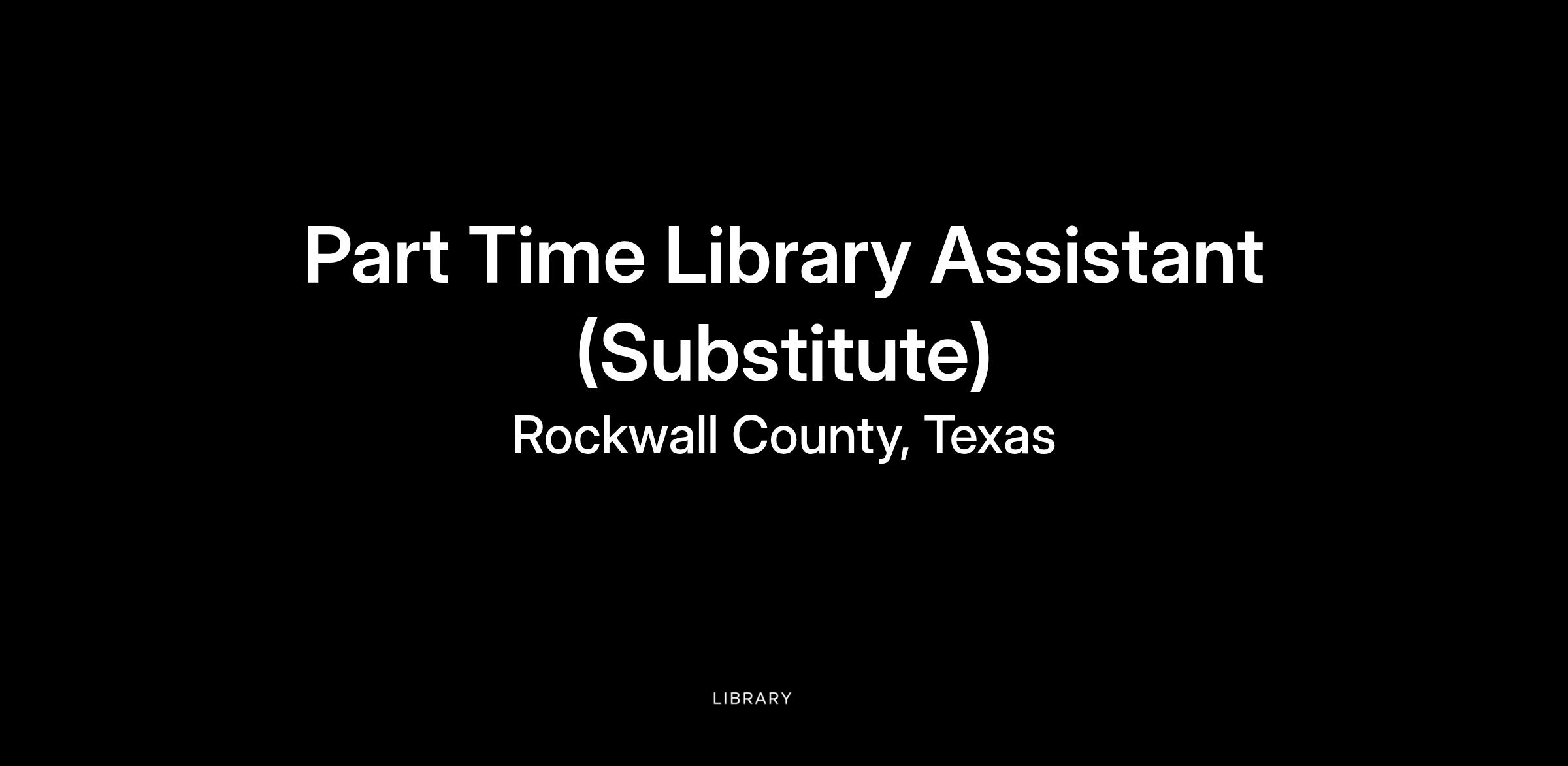 The Rockwall County Library has an opening for a substitute part time Library Assistant. This position requires a candidate with flexible availability. Hours scheduled range from 0 up to 21 hours per week.
