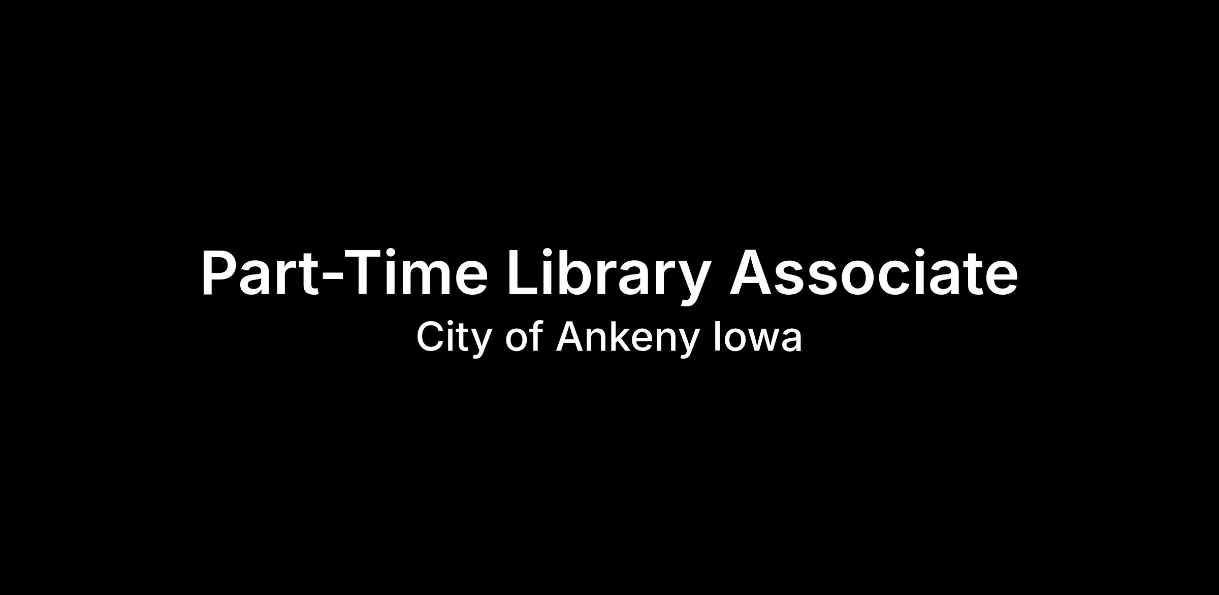 The Ankeny Kirkendall Public Library is accepting applications for a part-time Library Associate position. Under general supervision, provide library assistance to patrons and perform other duties as required in circulation, children’s, reference, and/or technical services area(s).