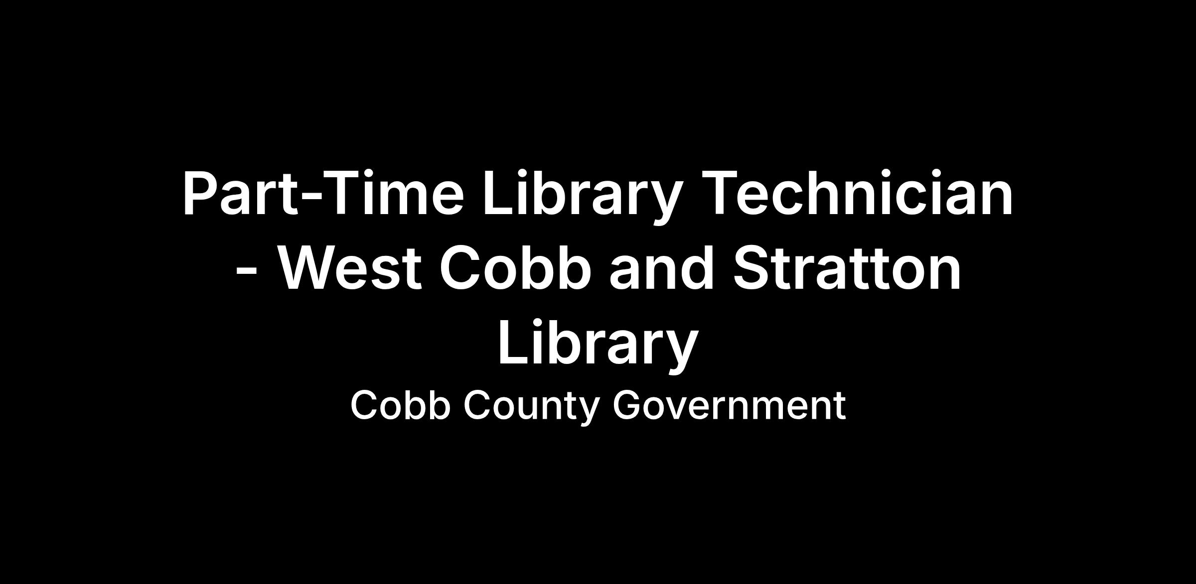 These two part-time Library Technician positions are located at the West Cobb and Stratton Library. In this customer service role, the successful candidate will assist patrons with using online resources and public computers in addition to providing circulation services. They will also be assigned to assist with shelving, processing book donations, processing daily delivery of materials, and special projects. This position requires an 18-hour week, including nights and weekends, with assigned Sunday afternoon shifts.