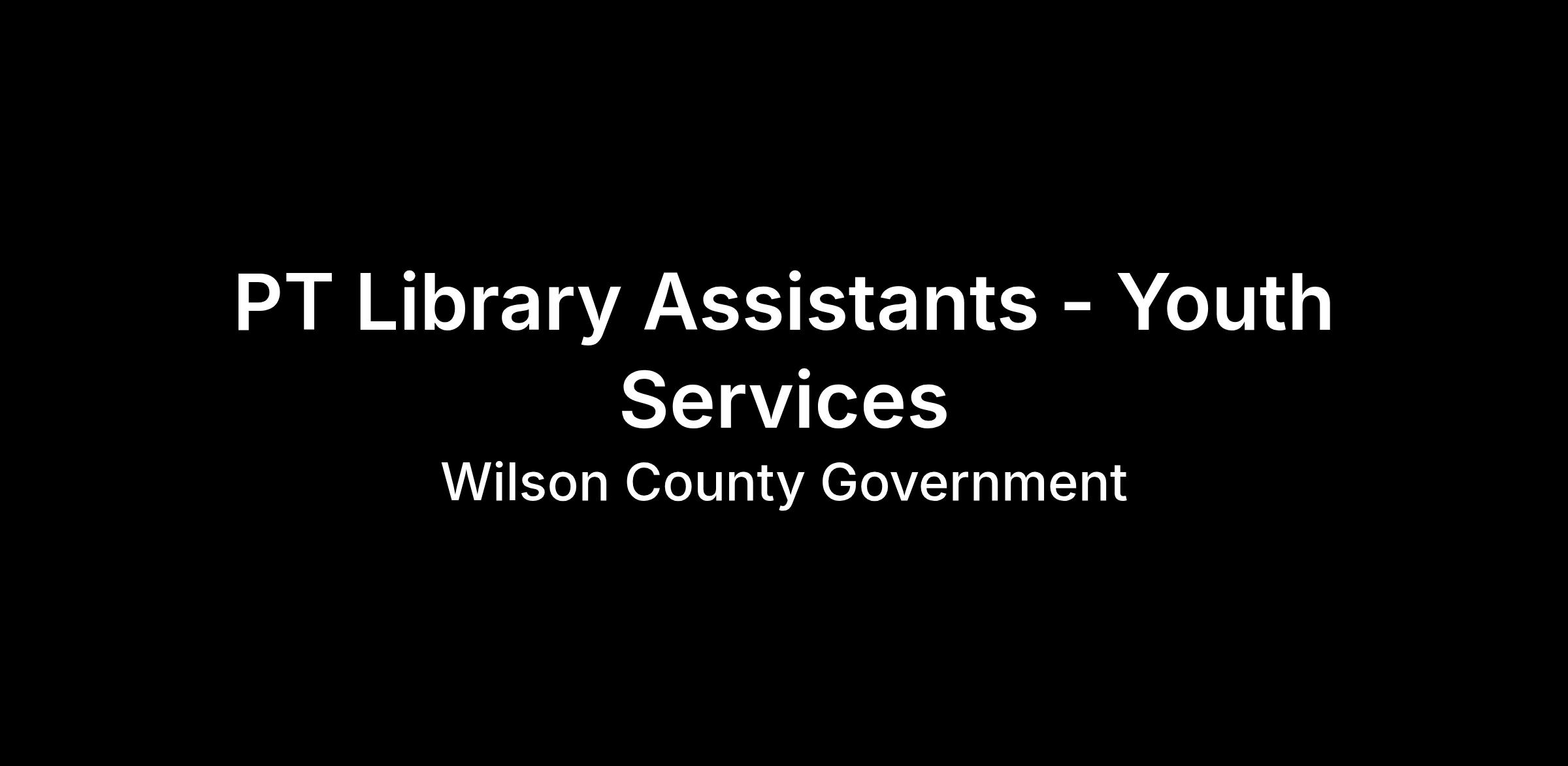 Two positions are available in the Youth Services Department of the Main Library in Wilson. Assigned locations are subject to change based on the needs of the library.