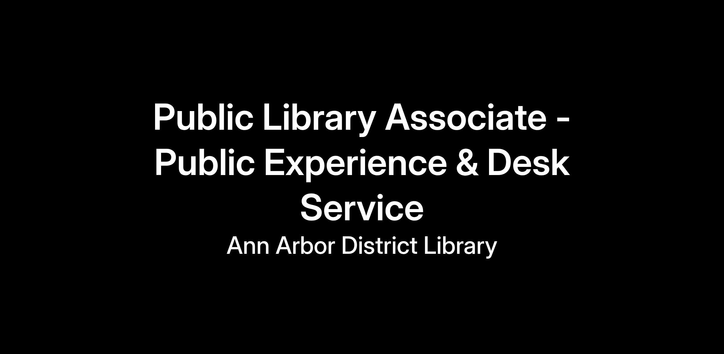 Job Title: Public Library Associate – Public Experience & Desk Service