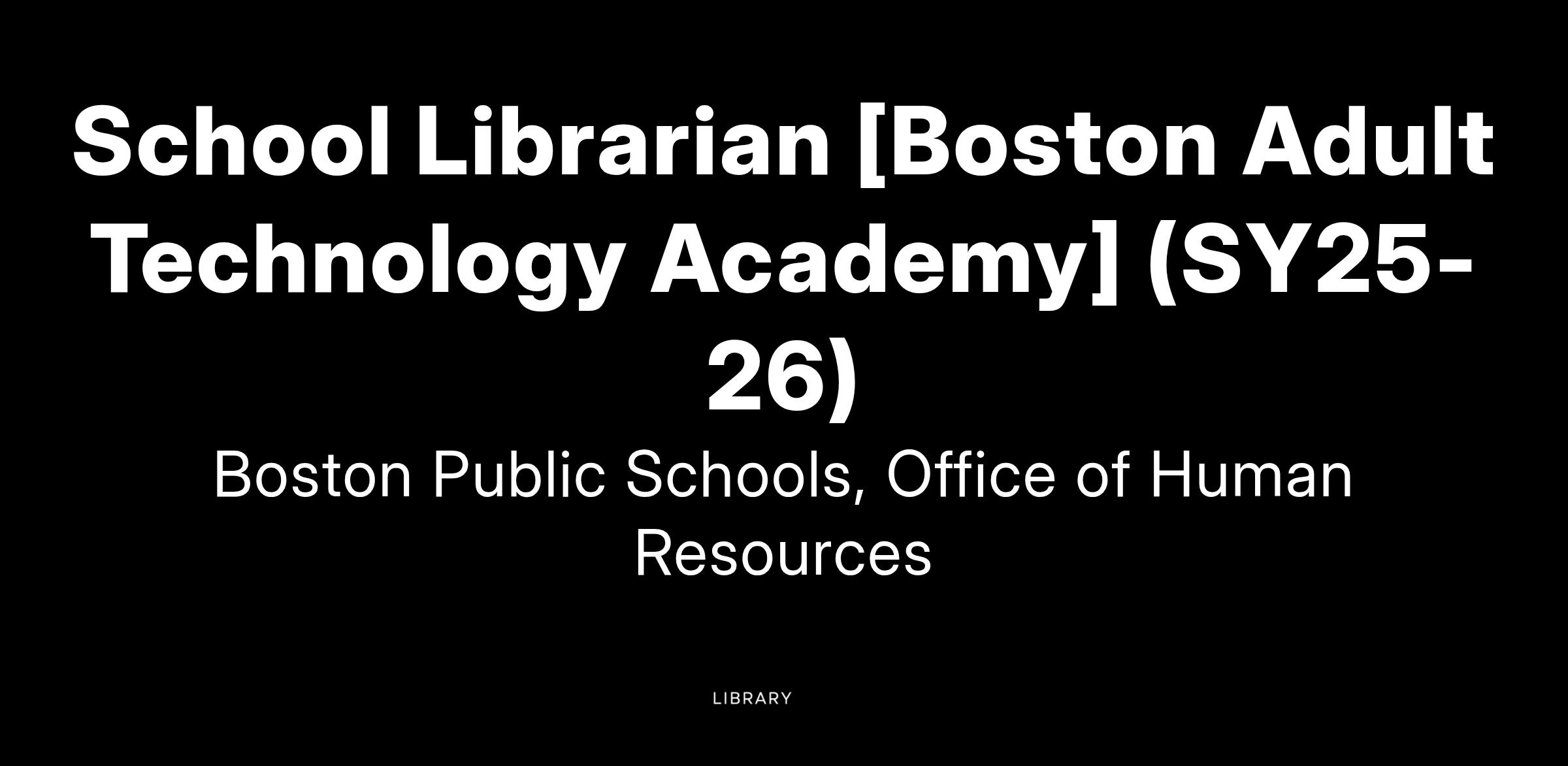 School Librarian [Boston Adult Technology Academy] (SY25-26)