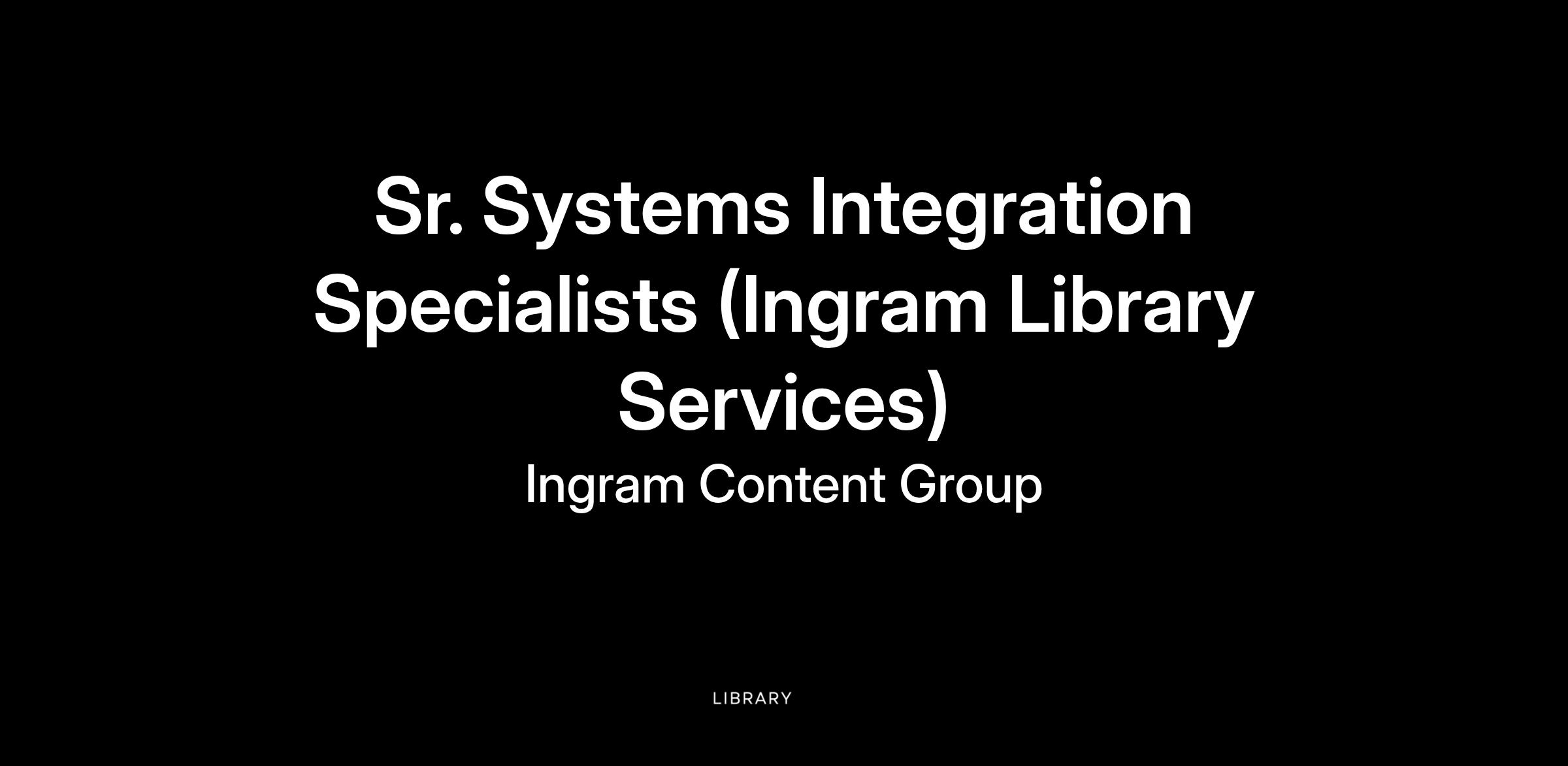 Ingram Content Group (ICG) is hiring for two Sr Systems Integration Specialists to contribute to our Library Services (ILS) team in LaVergne, TN just outside Nashville. We offer hybrid work schedules, however this person must live in the Greater Nashville area.