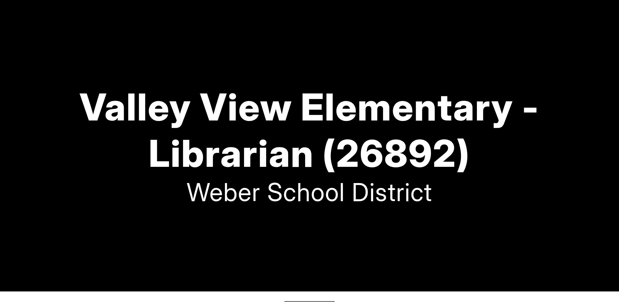 A position has been declared open in the Weber School District at Valley View Elementary for a Librarian. This paraprofessional position is for 7.00 hours per day, 185 days (9 months) per year, is compensated according to Lane 5(J) of the Administrative Assisants Salary Schedule, and is eligible for benefits.
